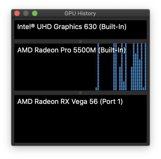 now I can go back to my macbook and post some pictures of activity logs but why do that when apple themselves have told me the GPU doesnt accelerate the internal display when I returned the blackmagic?