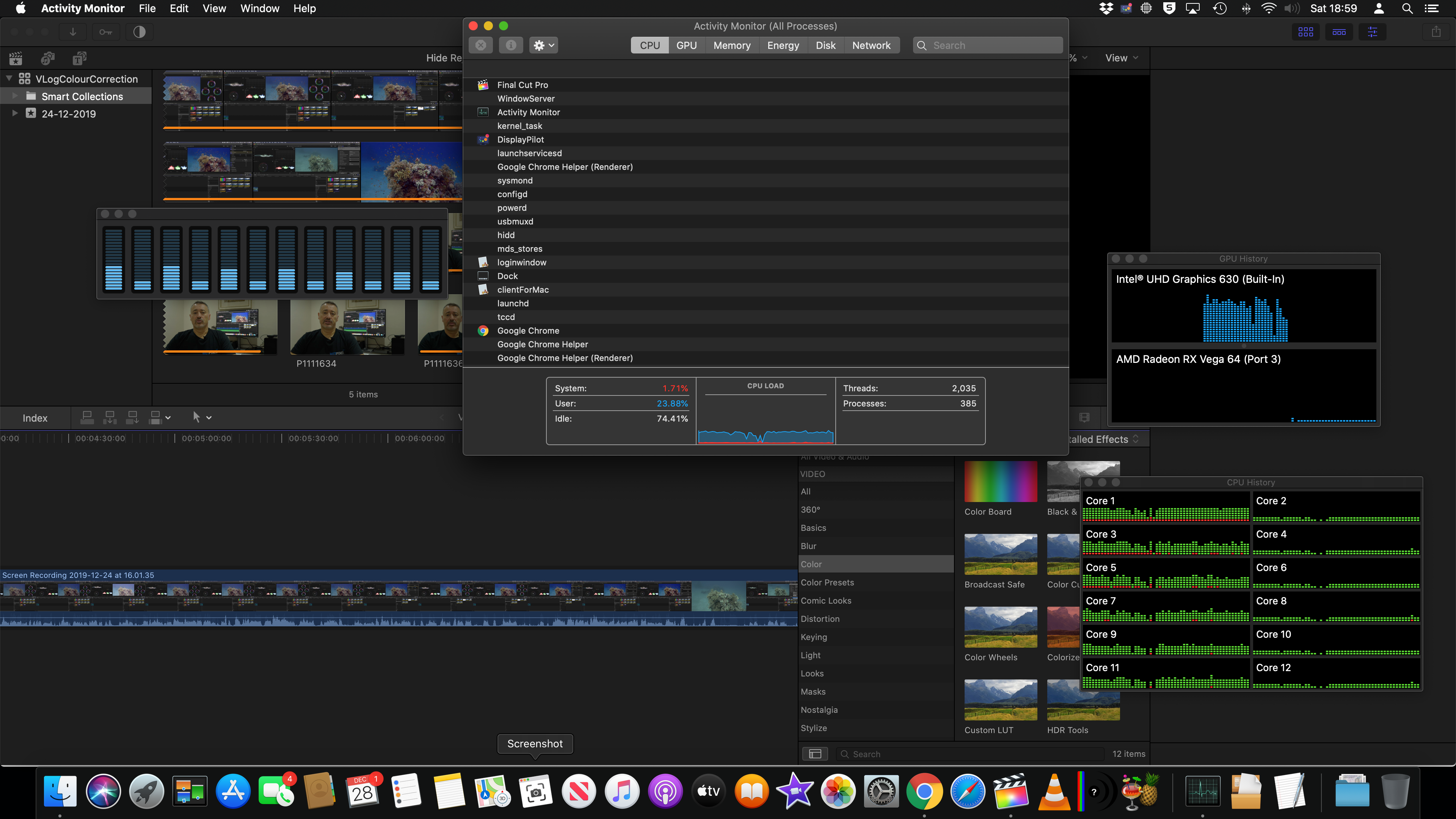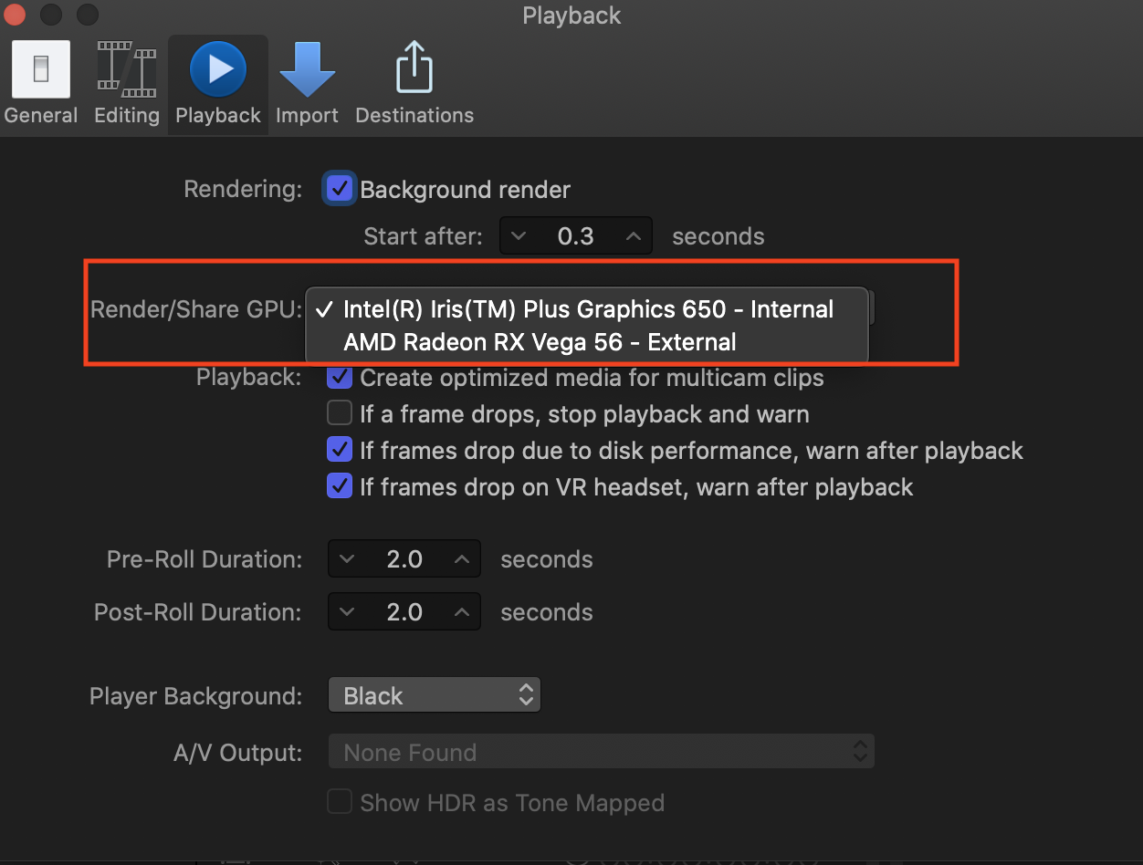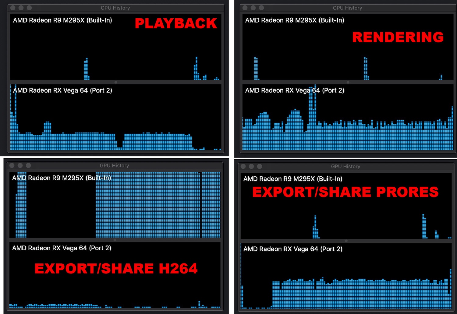 The above setup worked very well in FCPX 10.4.6 & Mojave - FCPX would use both internal and external GPU in tandem and never would i experience any lag though i had to open FCPX in low resolution mode for it to work properly. I would force the eGPU & Low Resolution mode from the Finder.