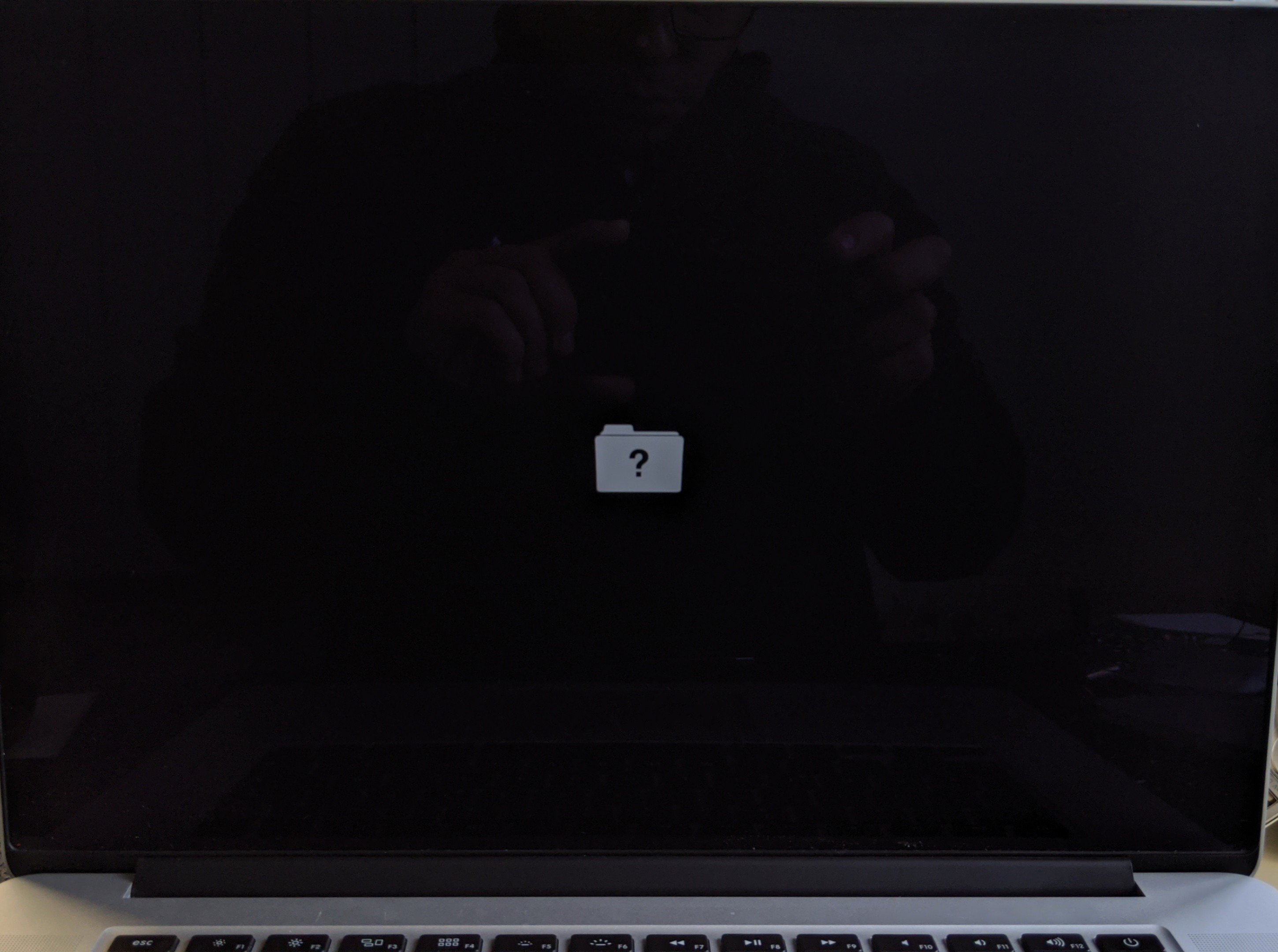 I am now left with a laptop that flashes the “?folder” icon after a couple of minutes.
