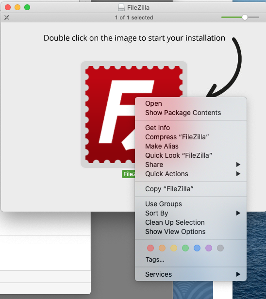 I assume that you are double clicking on the FileZilla install icon, yes? Don't do that. Instead right mouse click on it. You should get the following