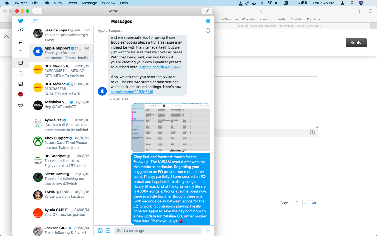 Since my upgrade to Catalina, the Equalizer in the Music app does not work as expected. Equalization settings are only activated: