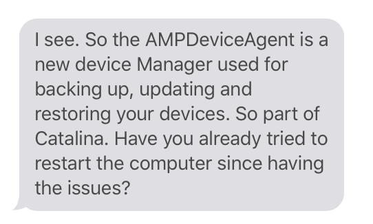 AMPDevicesAgent is a macOS component used for iOS device synchronization.