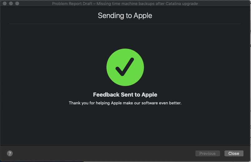 Missing Time Machine backups post Catalina Upgrade
