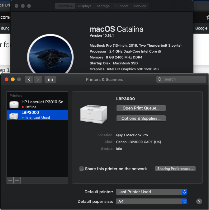 Everything done. Try to print (It show Canon LBP3000)