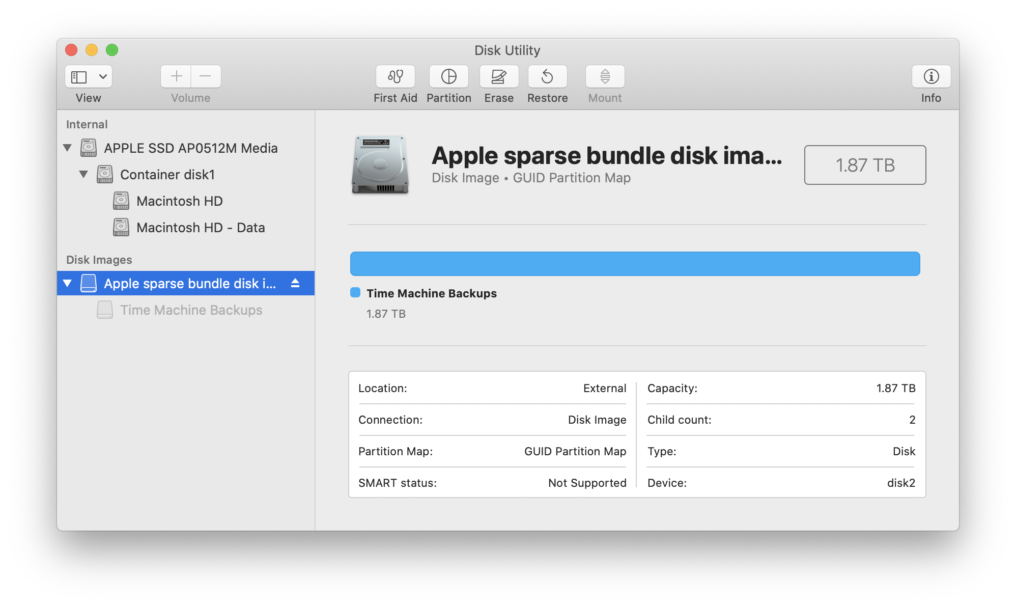 Even though the data is accessible using the above method, TM does NOT work. It shows a snapshot from today on the front panel, and all the dates are visible on the right side of the screen, but you cannot make them open, I have even waited in TM app for 20 minutes and it makes no difference.