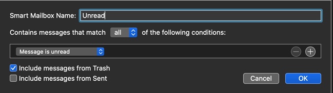 Yes, I know I can set up a smart mailbox and I have done that. But this is a poor second best because I can no longer toggle between including and excluding read messages in the display with the same search criterion.