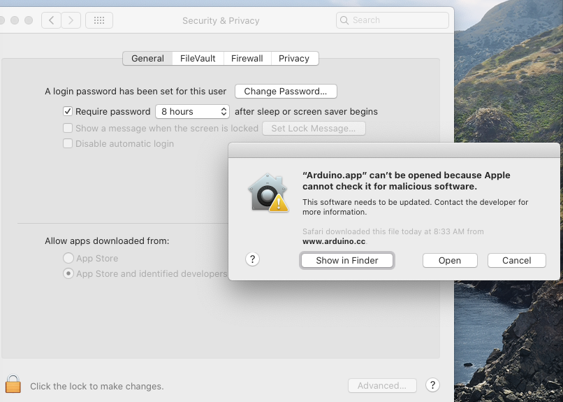 what I cannot do is download programs to the Arduino hardware.