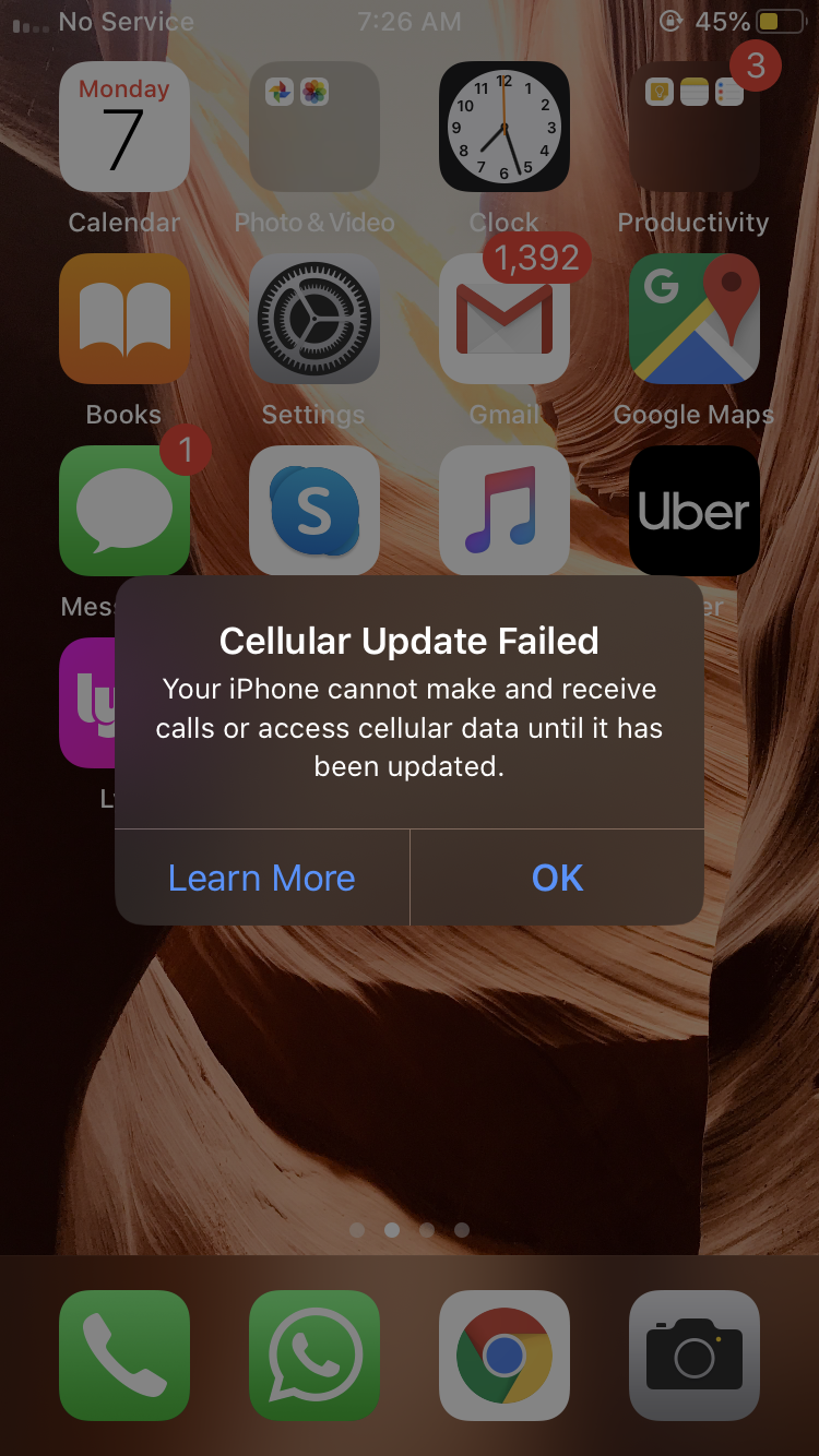 After the iOS 13 upgrade my phone refuses to connect to carrier network. Keeps searching indefinitely or throws the attached error. It does not even recognize the removal or reinserting of Sim card (usually it should ask for the device pin) - See this video.