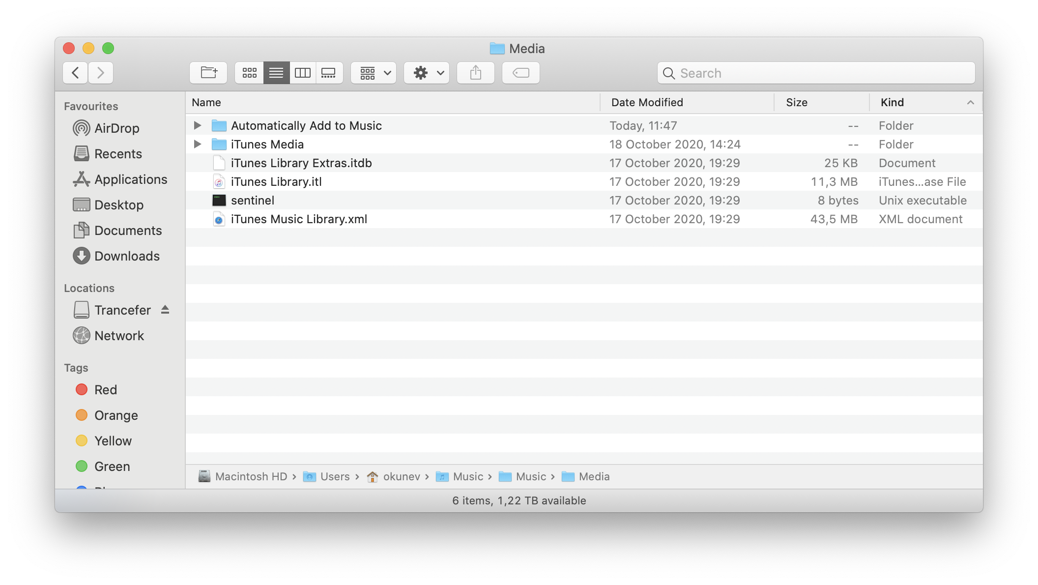 When upgrading to Music, it creates a new "Music" folder aside your original "iTunes" folder – in the "Music" directory. In this folder, it creates a new "Music Library" file, which you can ignore as you won't need it for the transfer.