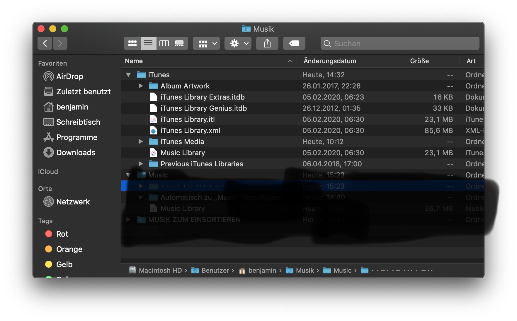 •my Old itunes Library was stored on an external HDD, since it was too big to be stored in the „Macintosh HD/User/USERNAME/Musik“ Folder (Original Standard Path).
