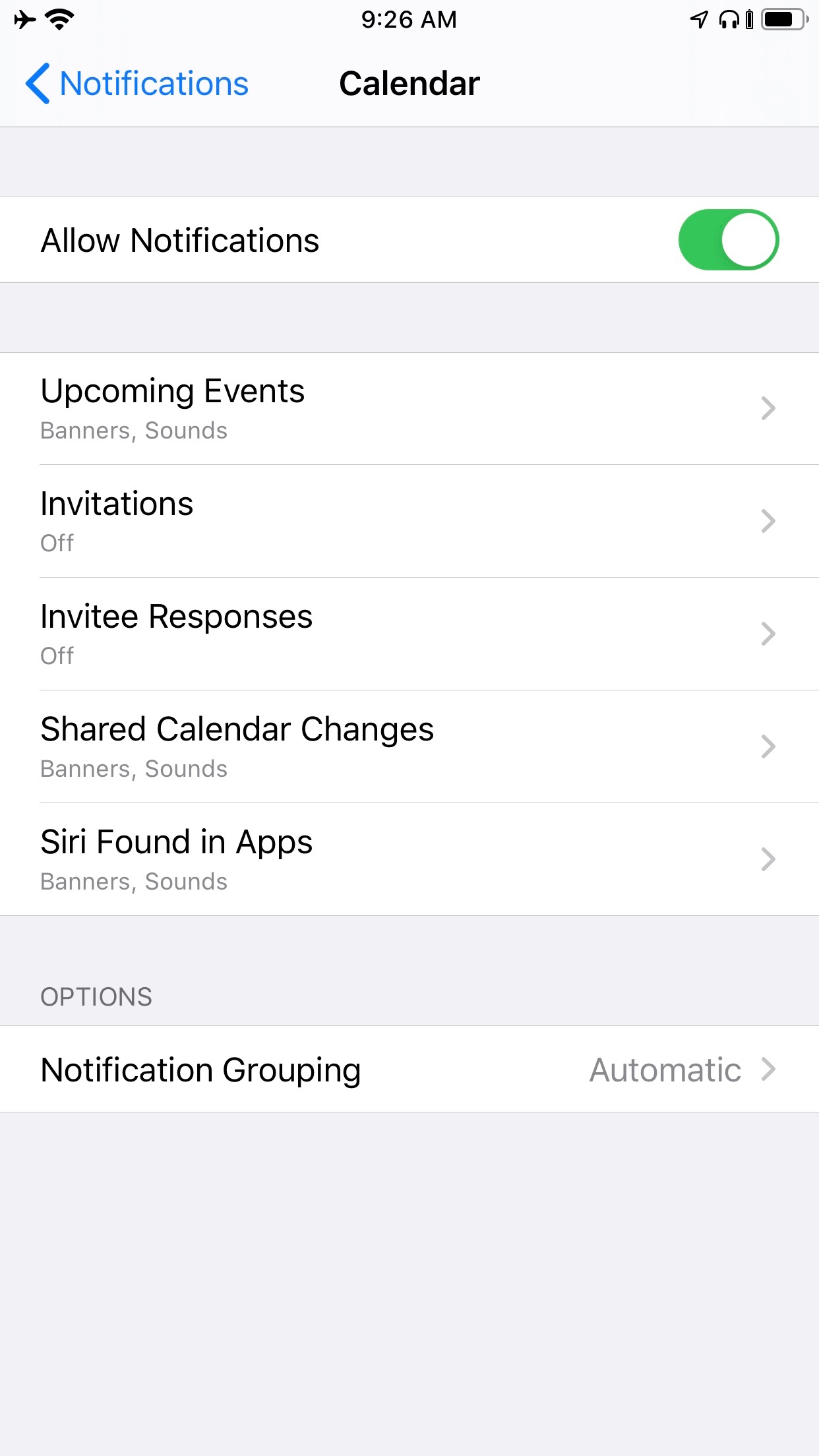 I turned off Calendar notifications for Invitations and Invitee Responses in Settings. I've attached a screenshot below of my Settings configuration. However, I still receive Calendar notifications, sounds, and badges for invitations from my Microsoft Exchange account for work. It seems as though turning off notifications for Invitations and Invitee Responses did nothing. The only way I've figured how to turn the specific notifications for Invitations and Invitee Responses off is by turning off all notifications for Calendar which I don't want to do. However, it would seem unnecessary to do so since there are settings specifically designed for the functionality I want; yet, these settings aren't working the way I thought they would. Is there something I'm missing or is this just straight up a bug from Apple? I appreciate any and all help. Thank you!