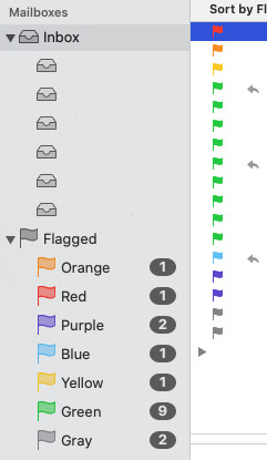 I understand that flag colors on MacOS Mail are supposed to sort this way: