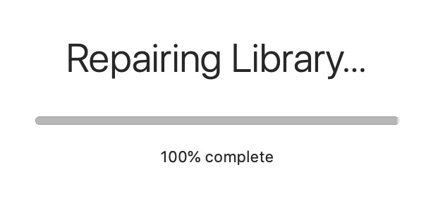 After updating my 2018 MacBook Pro to Catalina, I let the Photos app run the process of updating my photos library (which is slightly larger than 1TB). This process took just under 24 hours to run, so I was very happy when it finally finished running. However, the next time that I launched the Photos app, it just said "Restoring..." and a progress bar underneath at 0%. I have let it sit and it never progresses past 0%.