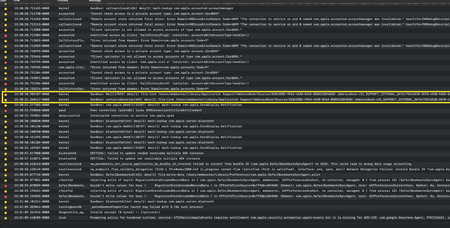 2. Quite com.apple.AddressBookSourceSync Process
