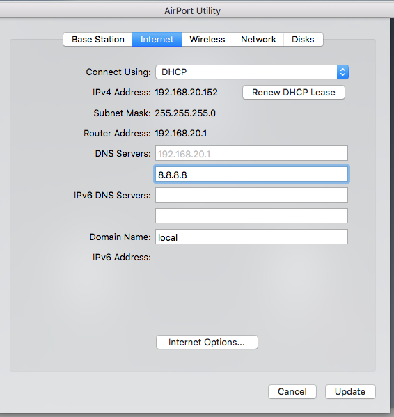 On the Internet tab add a DNS like 8.8.8.8 or 1.1.1.1 You don't need both but I have it setup like this.