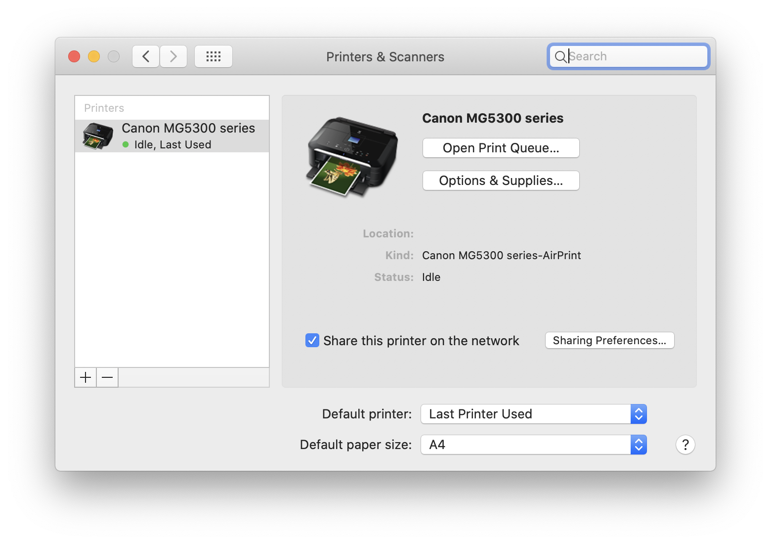 Then select 'Printers & Scanners'. You will see an image a little like this:-