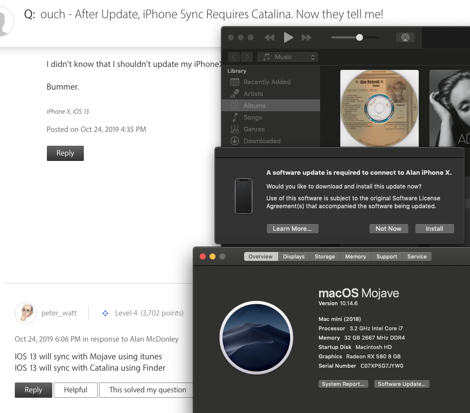 ouch - After Update, iPhone Sync Requires Catalina. Now they tell me!