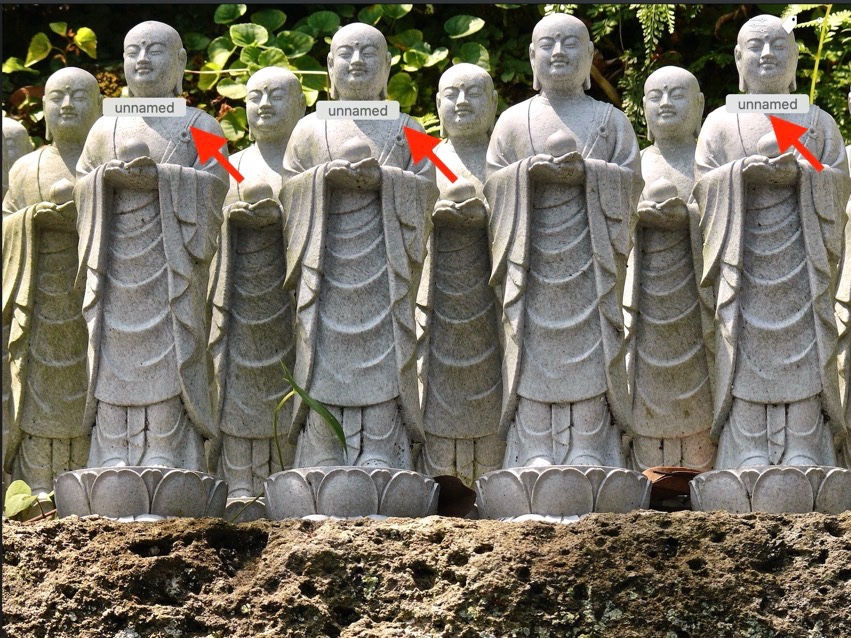 For example, I had named the faces in this image "Buddha", and the names have all been removed.
