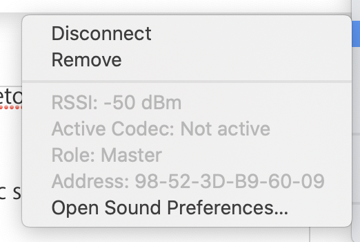 If i click on the bluetooth icon on the menu bar holding Option + Shift and go to JBL Xtreme 2 device appears with the option Active Codec: Not Active: