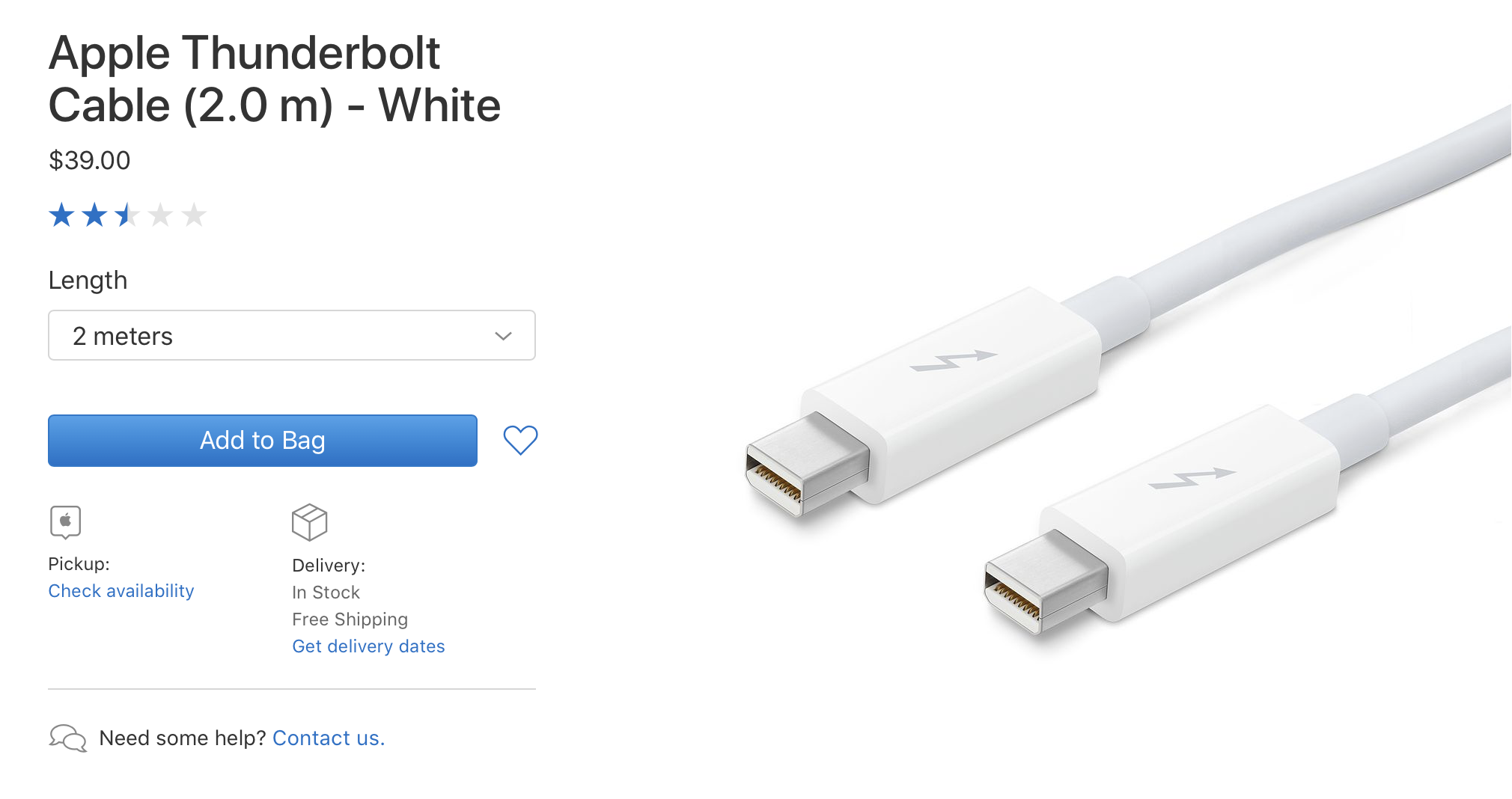 Thunderbolt 3 (USB-C) to Apple Thunderbolt cable