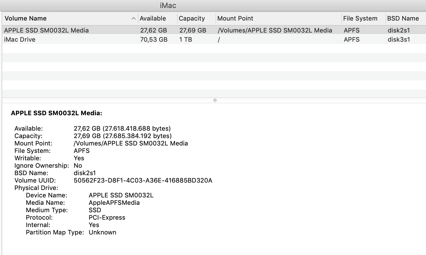 - If you have a Fusion Drive that has been split, you should see two drives. One of them should be labeled Flash Storage, with a capacity of 24GB, 32GB, or 128GB. The other should be at least 1TB.