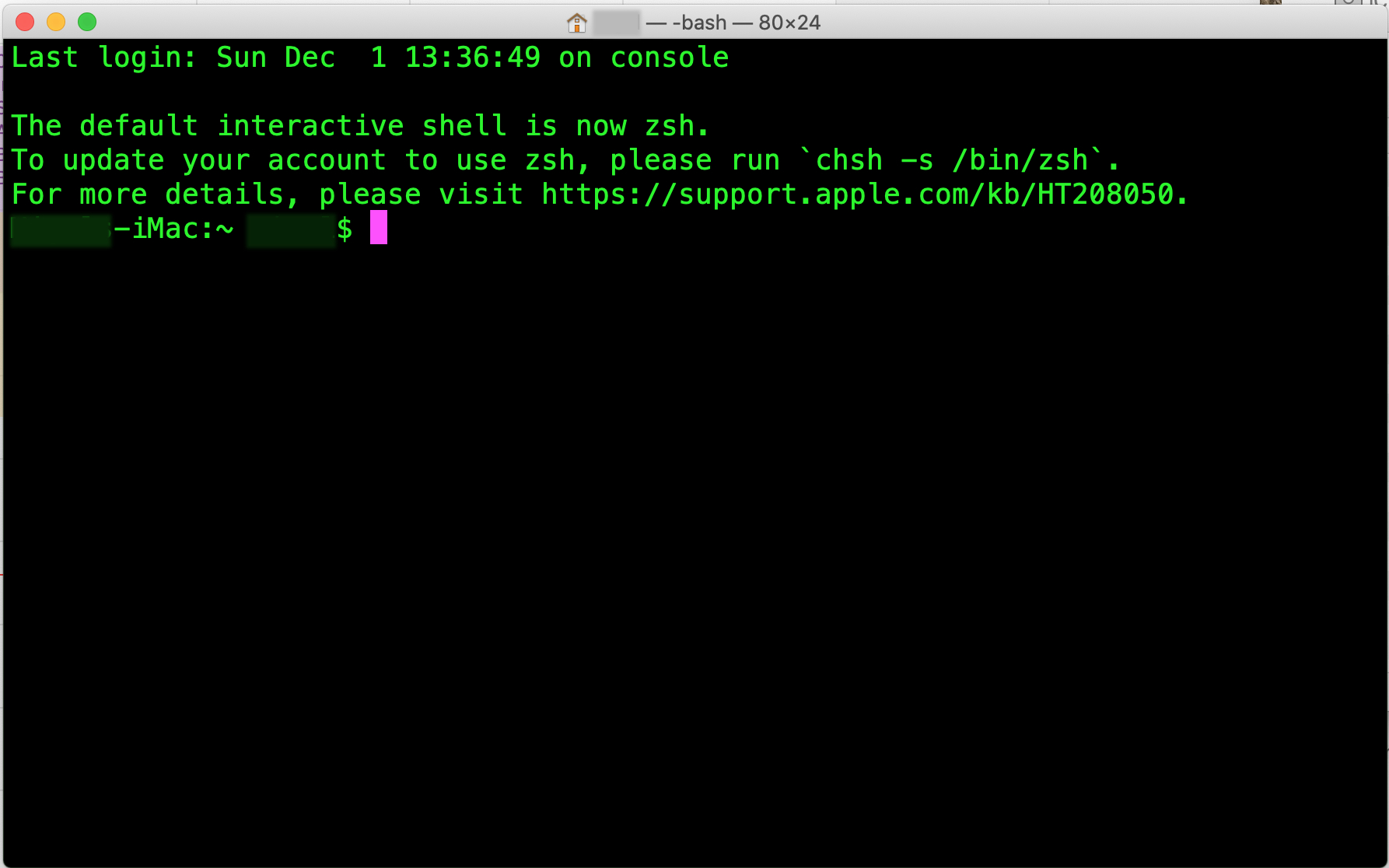 Finally I've also noted a fundamental change in how logon (virtual machine) is run. In the past the default shell has been the Bourne Again Shell lovingly referred to as BASH. When I run a terminal session (yeh, I know, I'm a sad person!) I now get a message that says I should switch to using the Z Shell or zsh (see below). This came in with Catalina apparently. It maybe that Apple apps need to run in zsh and that this is triggering the problem.