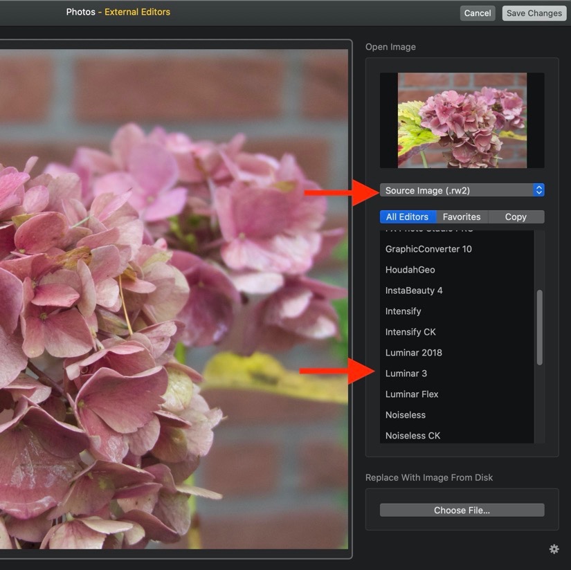 If i want to edit a photo in Luminar, I can't get the RAW file into the editing program. I can edit it with the plug in in Photo's, but I want to do my editing in Luminar.