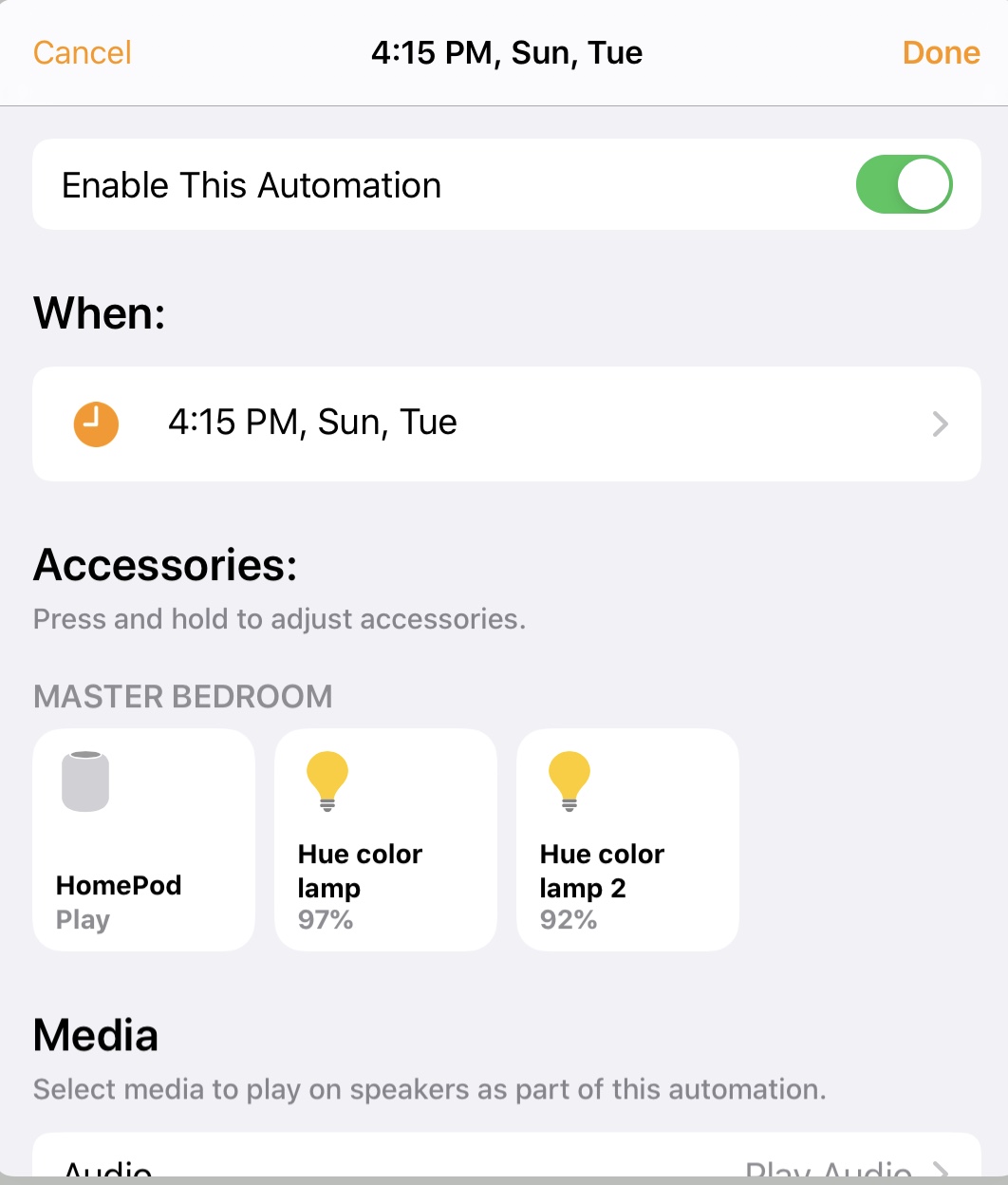 Yes, I learned earlier today that you apparently need to be running iOS 13.2 (released just last week) to get this to work under the Home app. I was using iOS 13.1 on my iPad and there you can enable an automation to play music on the HomePod at a specific time but it requires that you confirm the automation every time before it will run (at a particular time). So, not useful to create a wakeup music alarm.
