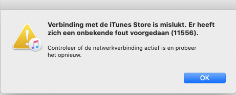 Translation: Connection to the iTunes Store has failed. An unknown error occurred (11556). Check whether the network connection is active and try again.