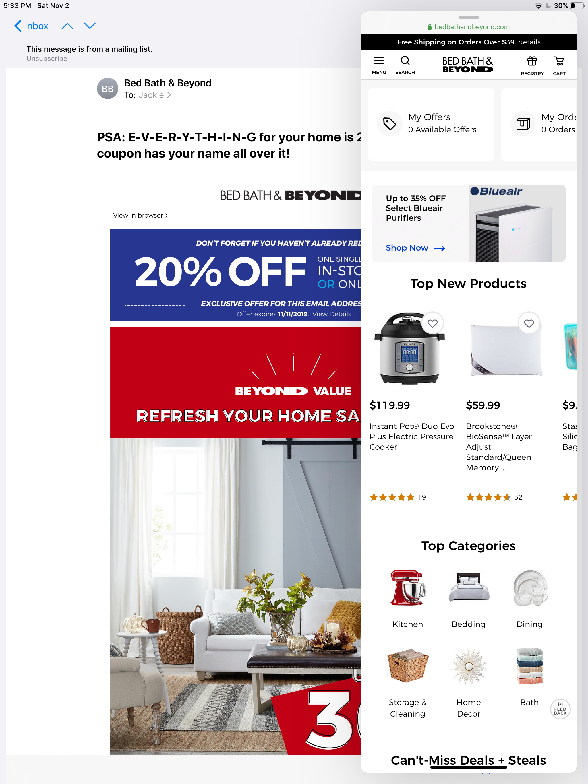 when I go to a website, Kohl’s, Best Buy, etc. and click on shop or enter something in search I get a narrow column on the right hand side of my iPad, not full screen. I want to see full screen, not a 3 inch column I have to scroll down in. The you tube video does not address this problem.