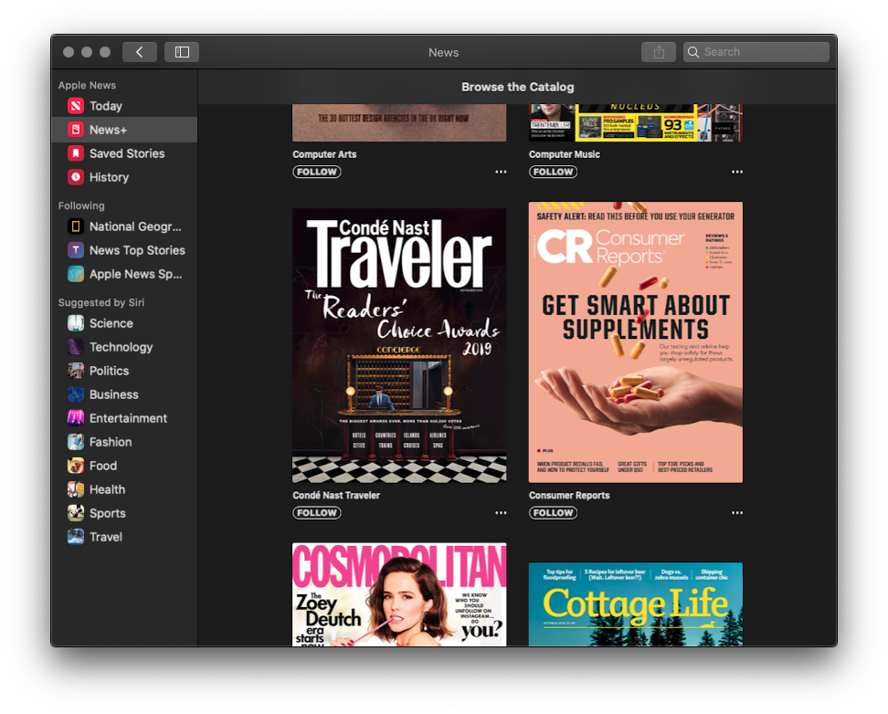 CR is listed as a magazine included with an Apple News+ subscription.
