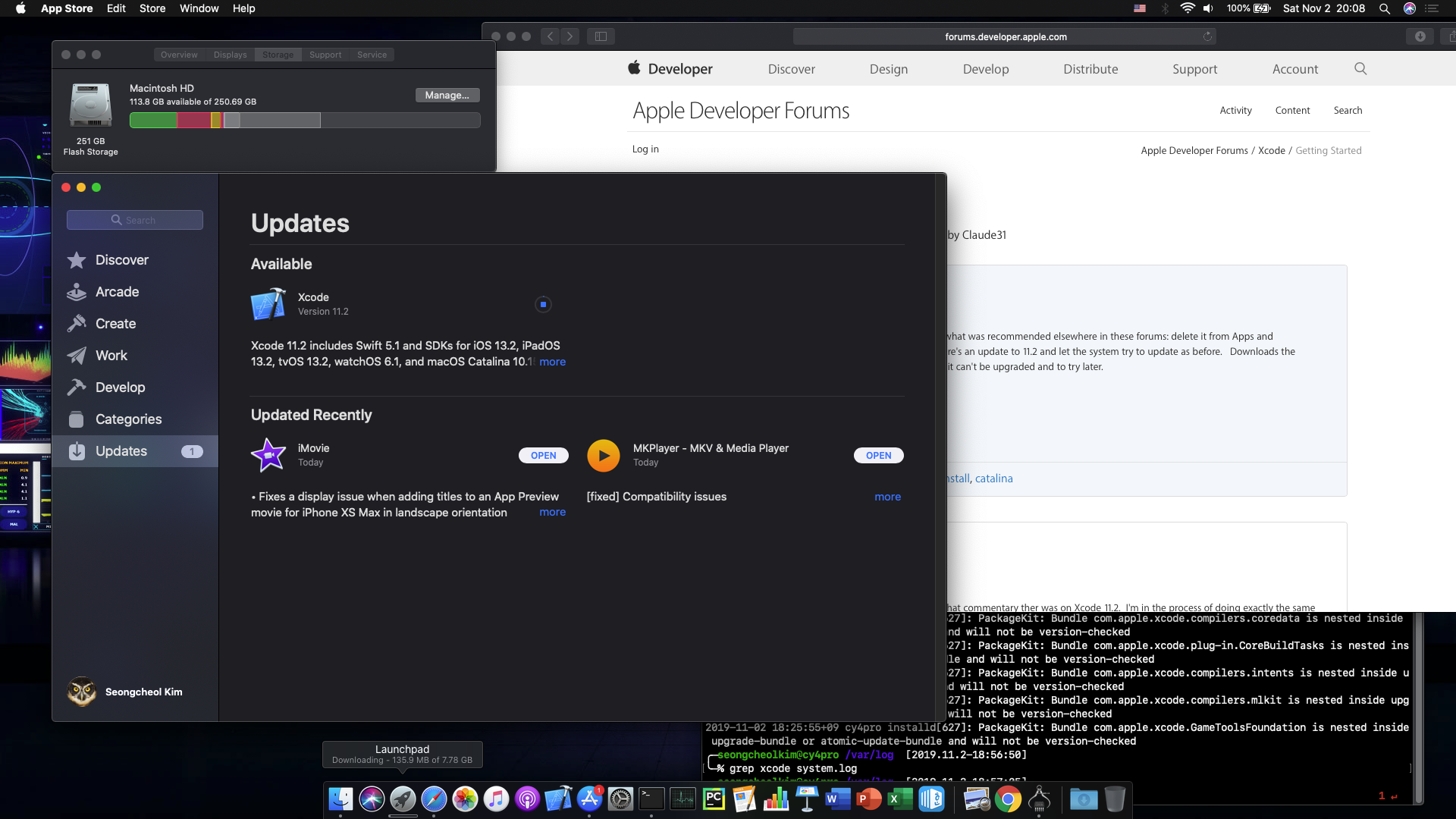 xcode 11.2 update fail and the size of Other(About This Mac > Storage) increased so huge(over 95 GB)