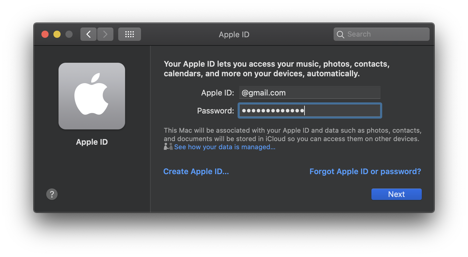 It will prompt enter the Apple ID password the Apple ID address will be already written in the field , so enter your Apple ID password and click on next , a small circle will rotate , be patient .