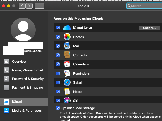The keychain box will get checked , after some time option button will appear in front of it , wait for few minutes , check the box of Siri , also the box of iCloud Drive is checked , click on option button in front of it and check the box of desktops and documents it will show setting up ( a small circle will rotate ) and click on done .