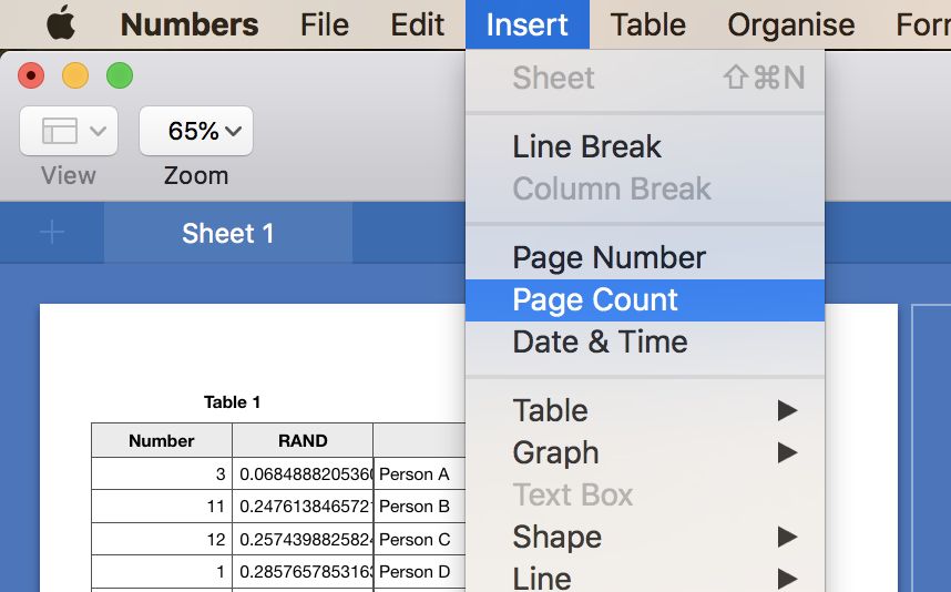 my document is on one sheet , but will require multiple pages to print. How can I number the pages