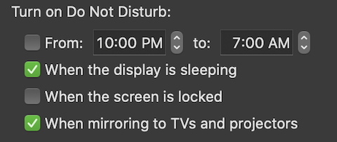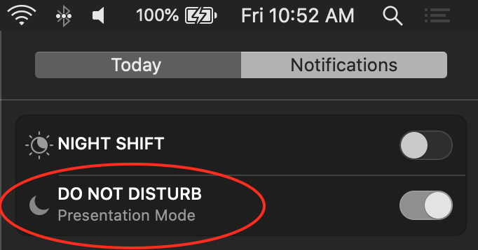 macOS Catalina automatically enables Do Not Disturb via "Presentation Mode" when external display connected