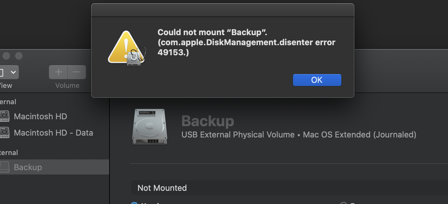 com.apple.DiskManagement.disenter error 49153