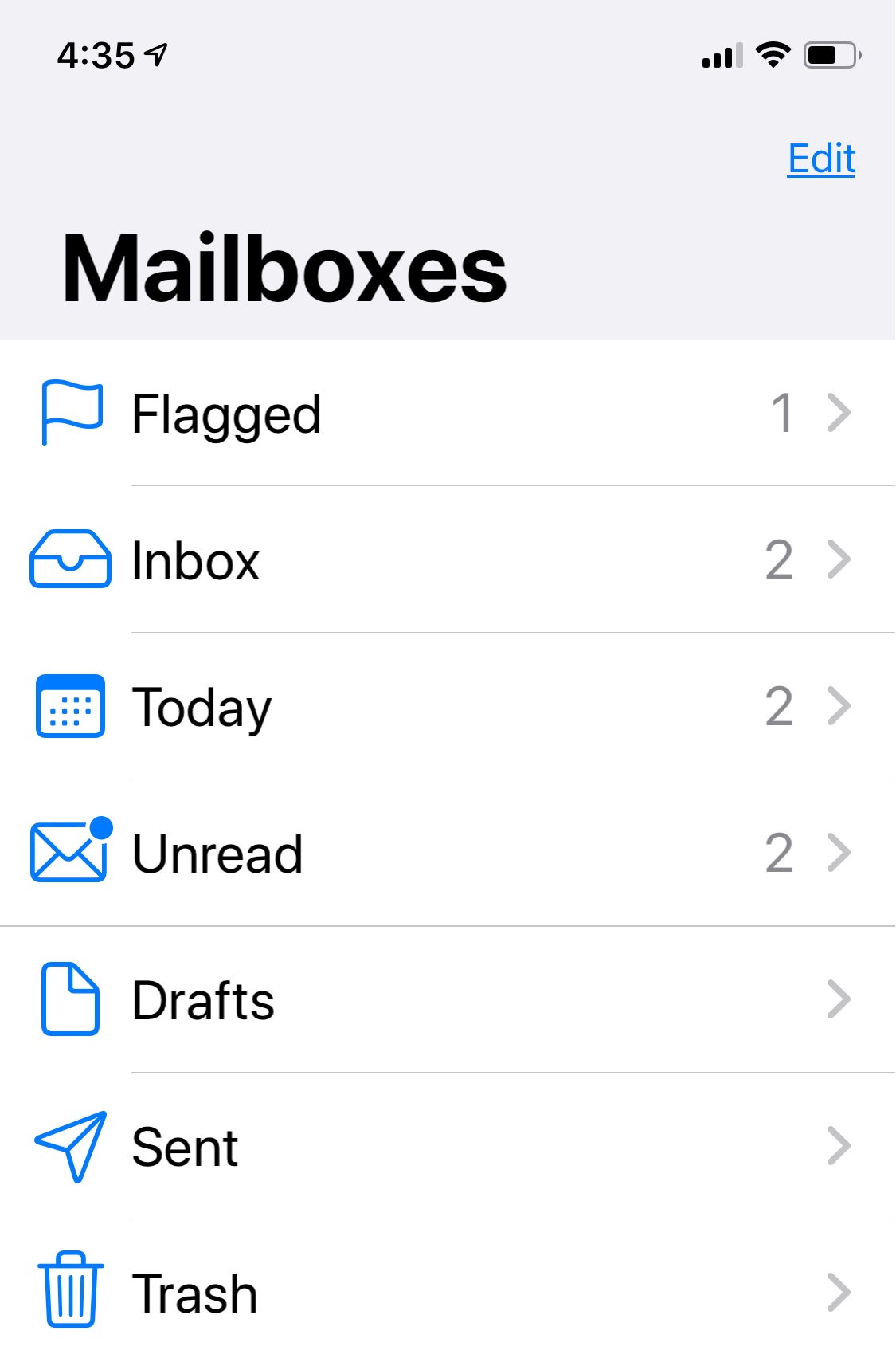 Hear it shows I have 2 emails in the Inbox & Unread.