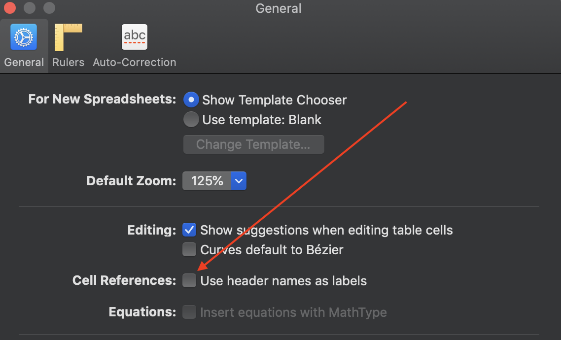 I suspect what may be going on is that in Numbers > Preferences > General you have 'Use header names as labels' checked.