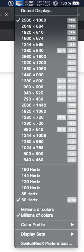 • Internal + 4k 60 Hz direct connected with USB-C to HDMI 2.0 cable = 20 W