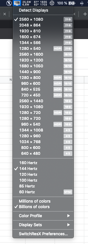 2) 100hz, 120hz, 144hz, 160hz draws only 5w.