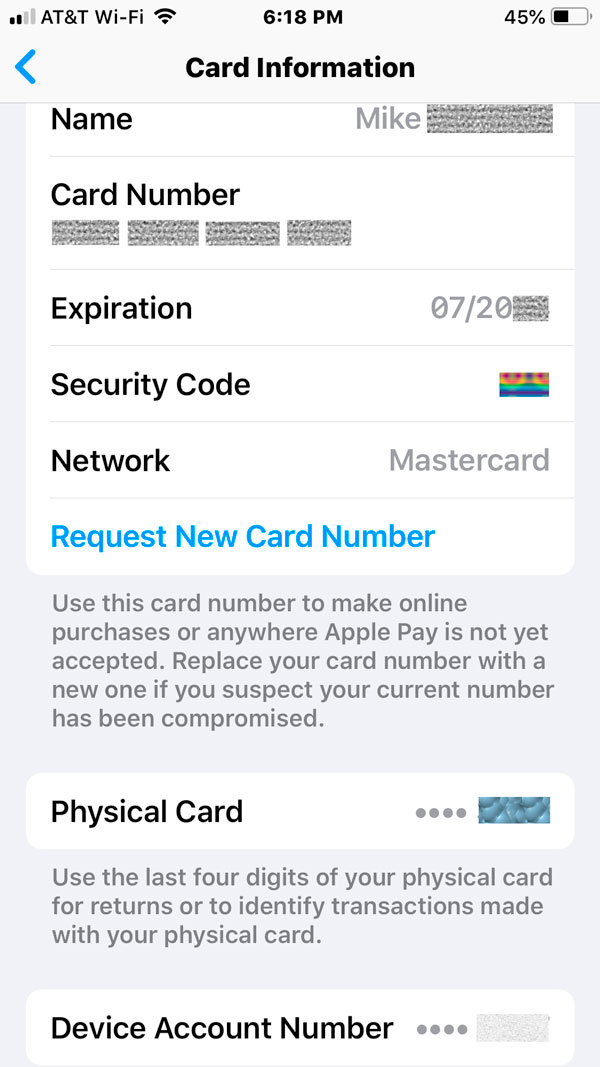 I can see the full card number for the Apple Card in Wallet. I only see the last 4 digits of the physical card and device card in Wallet. The physical card does not have a printed number. Questions: