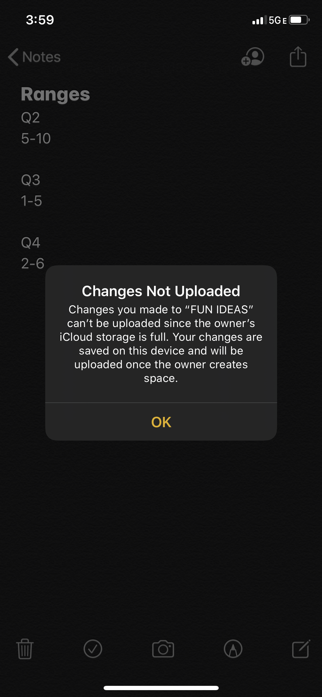 my friend shared a collaborative note with me via the notes app and he ran out of iCloud storage so I deleted the note because I was tired of getting a notification telling me he was out of storage every time I opened the notes app (see picture). However, I am still getting the notification every time I open the app and am wondering how to resolve this.