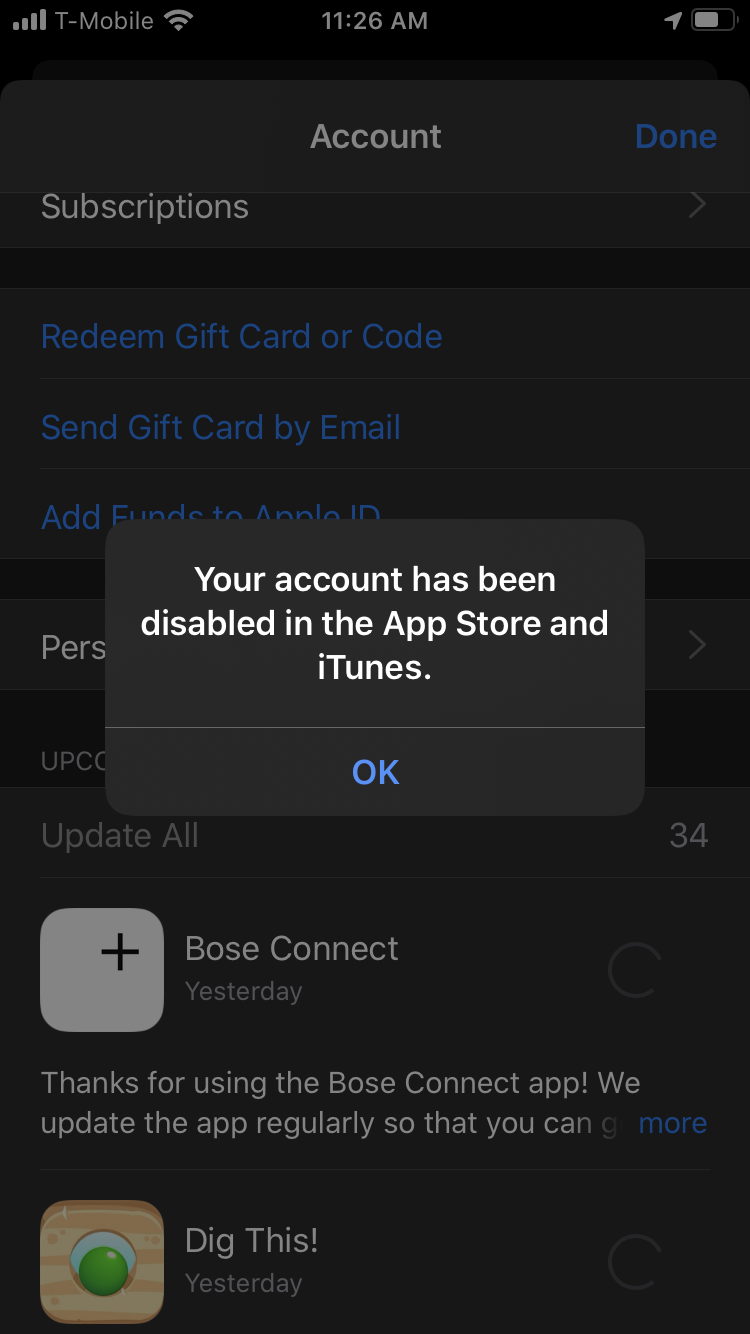 Apple ID disabled - Your account has been disabled in the App Store and iTunes