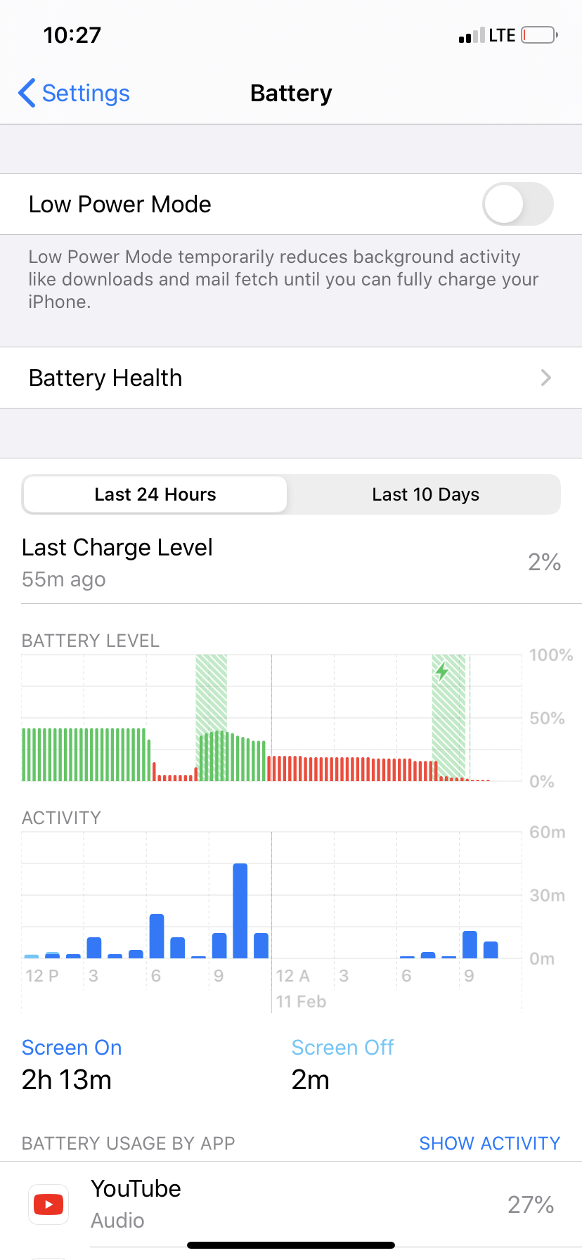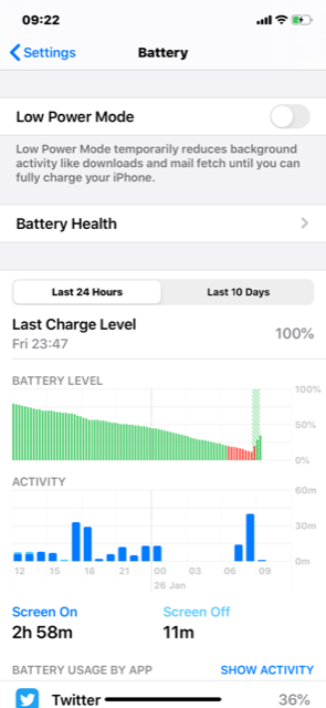 The battery on my iphone 11 was performing great until just a few days ago. (Up until then I only had to charge it overnight) I updated to ios 13.2.3, and it is no better. My battery is almost completely drained halfway through the day.