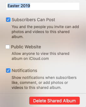 I am unable to see who I shared a photo album with on my Mac. This is primary computer I use to manage my photos. My photos are stored on an external hard drive.