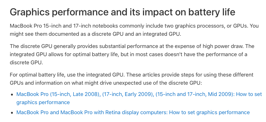 Lastly if you leave these apps open and just shrink them into the dock or close their windows they are still keeping the dGPU activated, so you will still experience battery drain even when you're using basic apps like Apple's office suite.