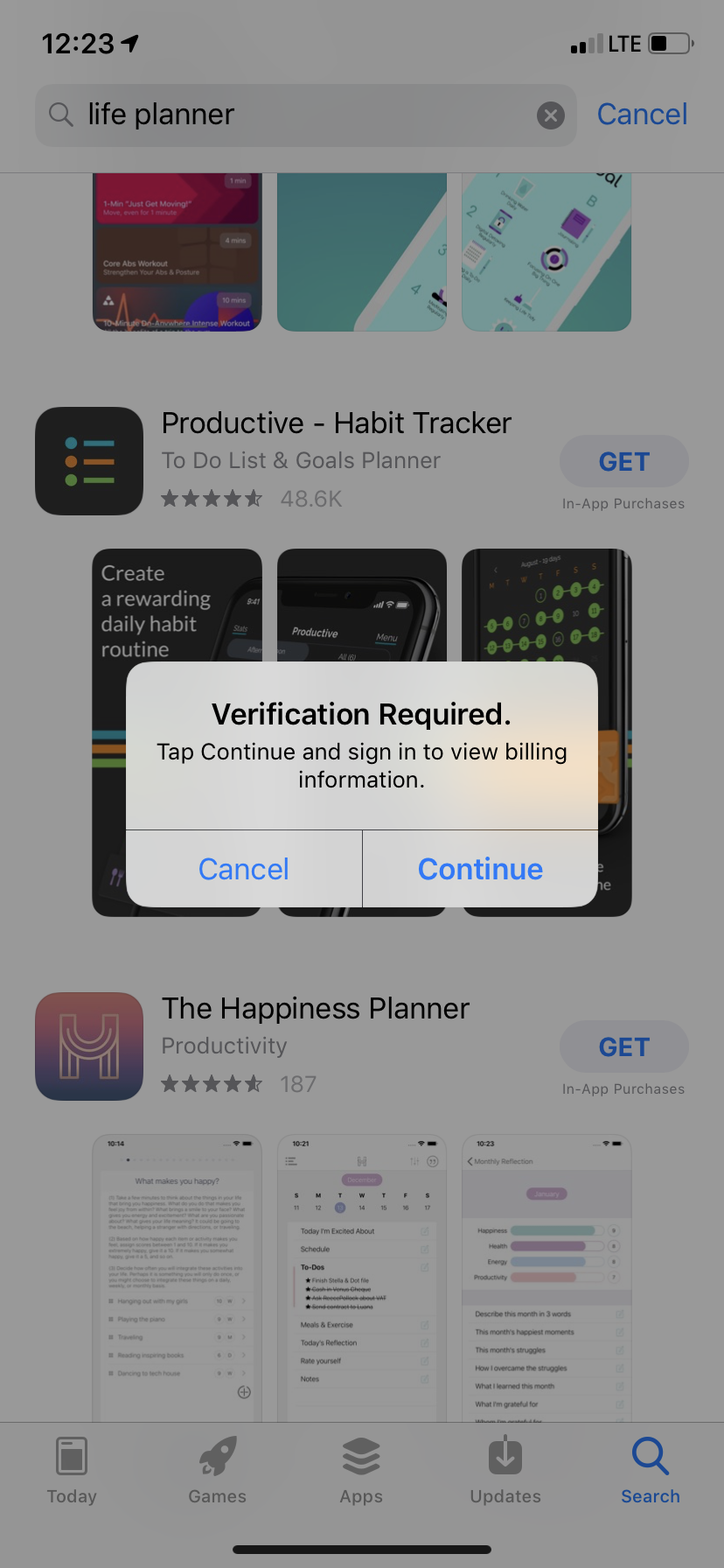 So I’ve been trying to download this planning app and every single time I download it it always ask me for verification and I click continue and it brings me to view my billing information and then I’ll just click done and it brings me back to where I started in it won’t let me download it and I don’t know what to do ..?????help