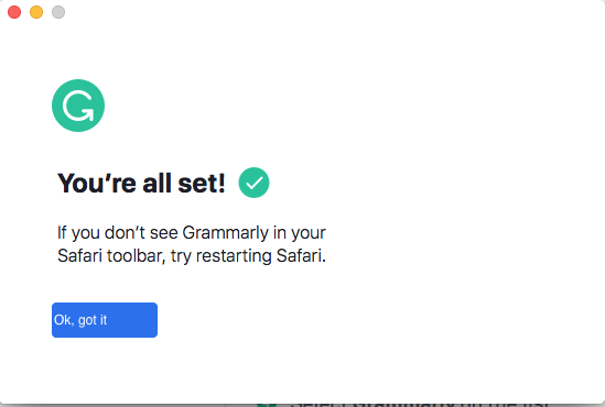 Have installed the latest 'Grammarly for Safari' but it won't launch. After downloading the new version, I get the posting attached. But I'm stuck there, the program doesn't launch. Can't delete the app from my apps folder to reinstall because extensions are open. Can uninstall the Grammarly extensions from Safari to reinstall because I have to remove the app from my app folder first. What to do?