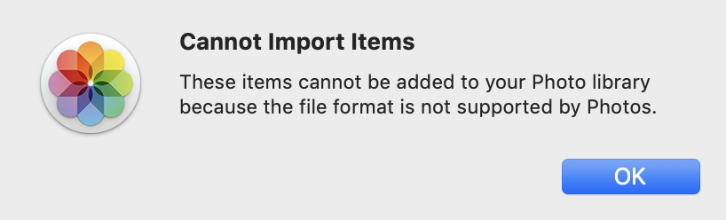 New iMac running Mojave. When trying to migrate the old iPhoto library (v9.4.3) from its ancient predecessor to Photos 4 on the new machine, I get the attached error message,